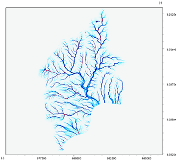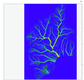 Over this network, a steady-state discharge is routed through a simple flow accumulation, with another speed up by using fast sweeping numerical algorithms.