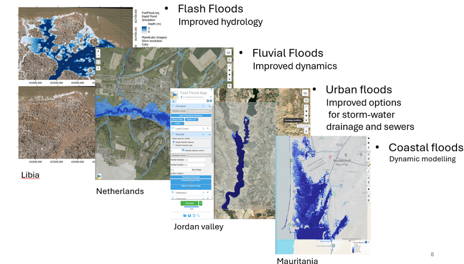 The Fastflood Model is a web-based simulation platform (www.fastflood.org), that combines industry-standard methodologies developed in the LISEM model since 1993 (Bout & Jetten, 2018), with recent innovations in flood modelling (Bout et al., 2023).  It features Interactive speed, easy-to-use model setup and simulation, and the accuracy of industry-standard methods. The method is based on the steady-state assumption, which enables high computational efficiency. However, steady-state situations are exceptional in nature. For this reason, the model uses a series of algorithms to compensate and correct the derived flow heights while avoiding the need for dynamic simulations.